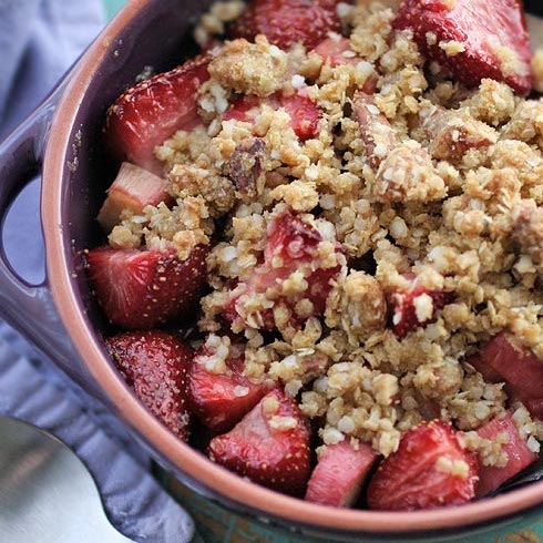 Gluten Free Rhubarb And Strawberry Crumble Gluten Free Rhubarb And Strawberry Crumble : A dessert crumble bar made with a shortbread base, oat crumble top and a deliciously fruity compote.