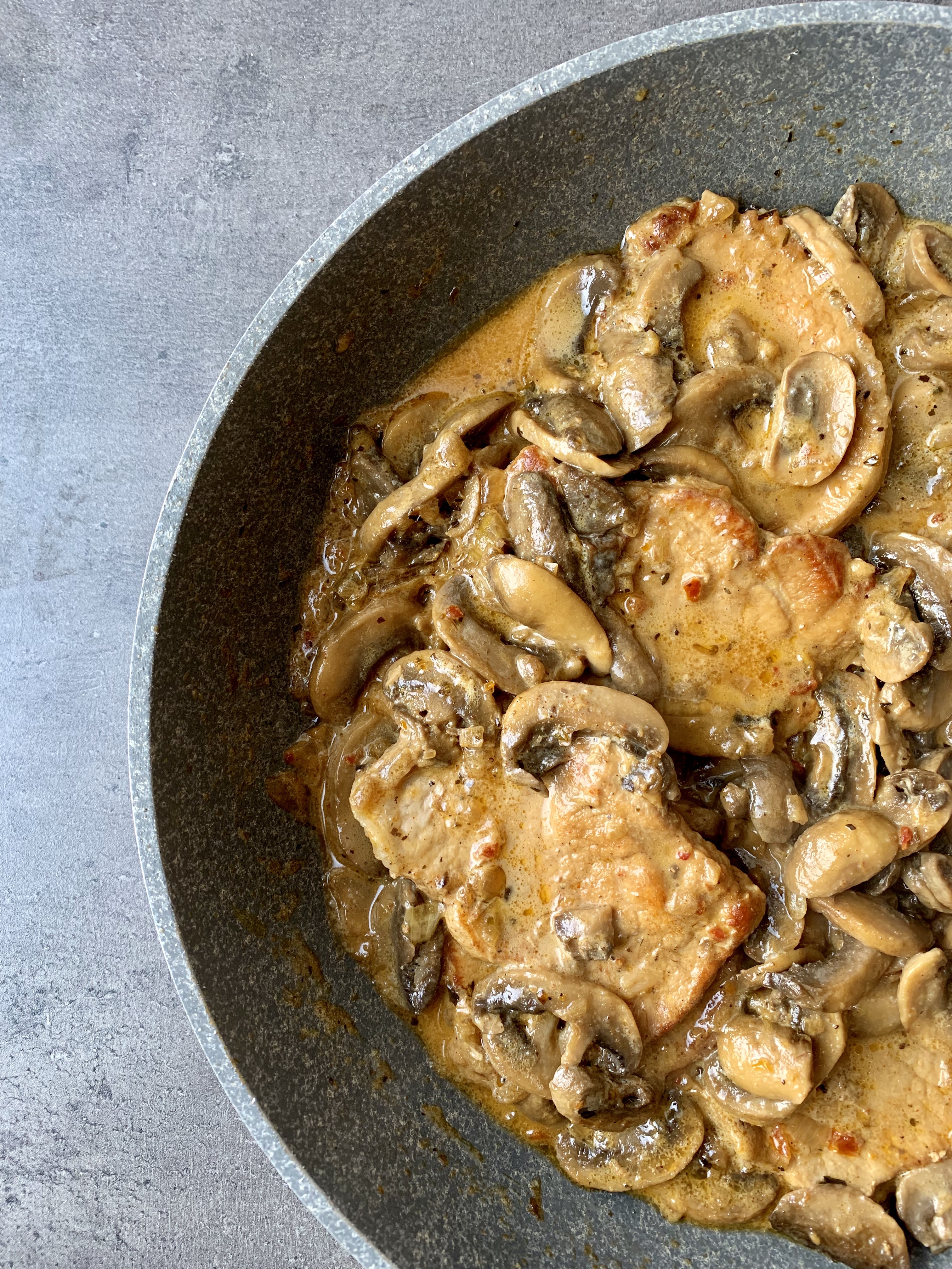Keto Mushroom Cream Sauce Keto Mushroom Cream Sauce : Return chops to the pan and reduce heat to low.