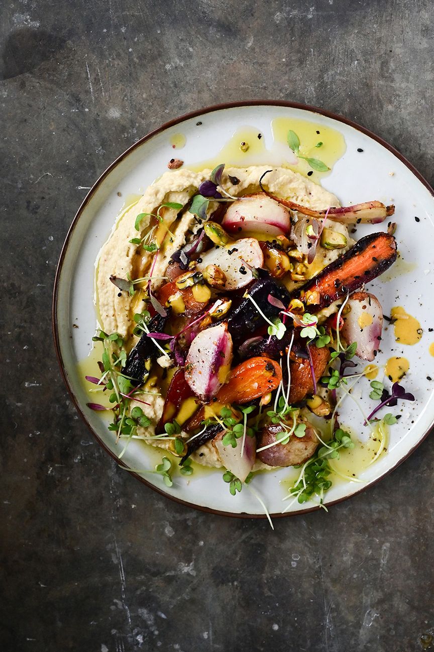 Roasted Vegetable Hummus Roasted Vegetable Hummus / Lightly oil a baking sheet with 1 tbsp vegetable oil.